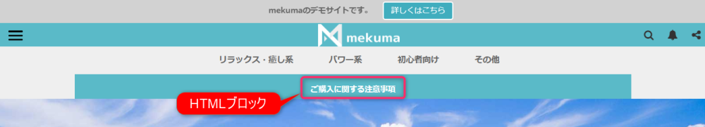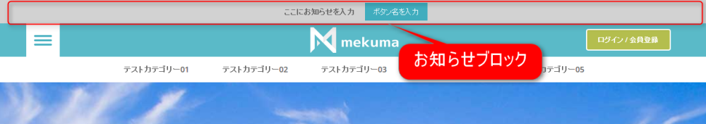 ウェブサイトの最上部に運営者からのお知らせを表示するブロックです。