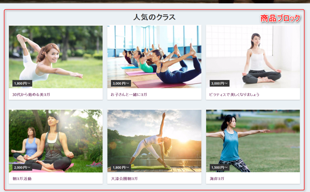 商品の一覧を表示するブロックです。