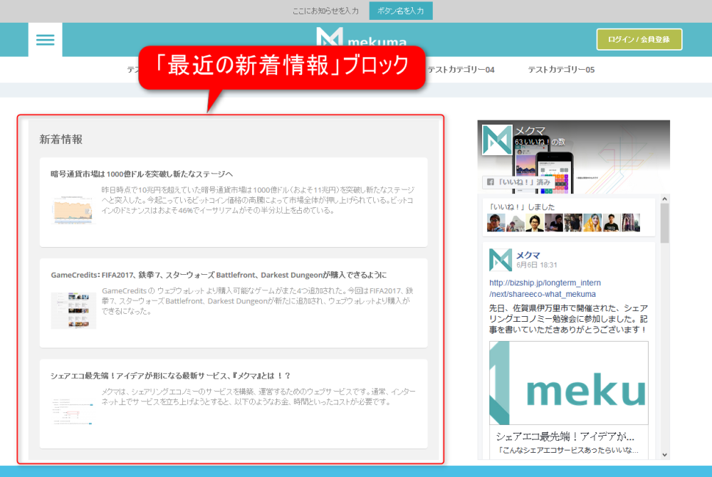 最近登録された新着情報を表示するブロックです。