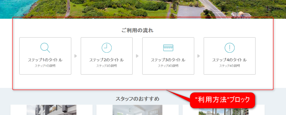 トップページ用ブロック : ”利用方法”ブロック
