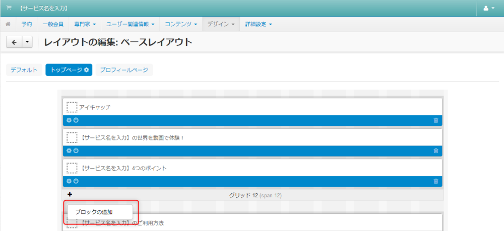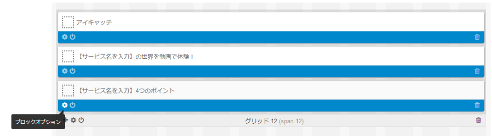 ※ 設定項目はブロック毎に異なります。各ブロックの設定項目については、 ブロック一覧 をご確認ください。
