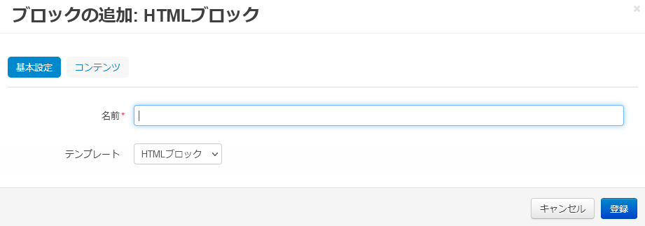「ブロックの追加」ウィンドウに表示された項目を指定・入力して、「登録」ボタンをクリックしてください。
