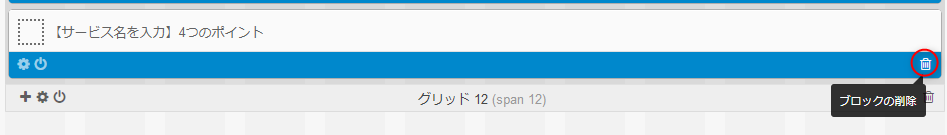 削除するブロックの右下に表示されているゴミ箱アイコンをクリックします。