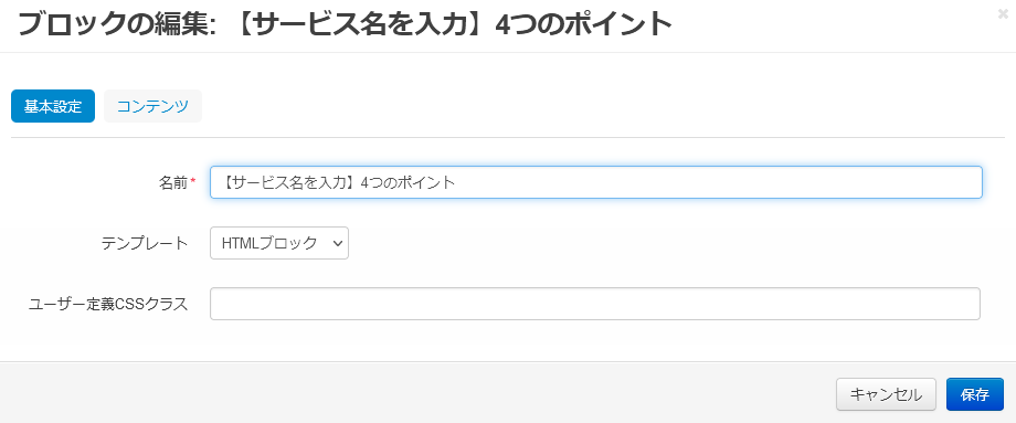 「ブロックの編集」ウィンドウが表示されるので、各項目を指定・入力したうえで「保存」ボタンをクリックしてください。