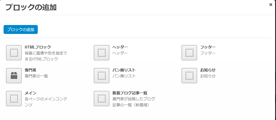 mekumaで設定可能なブロックの一覧です。