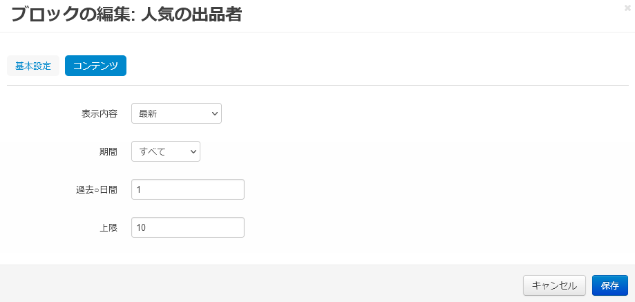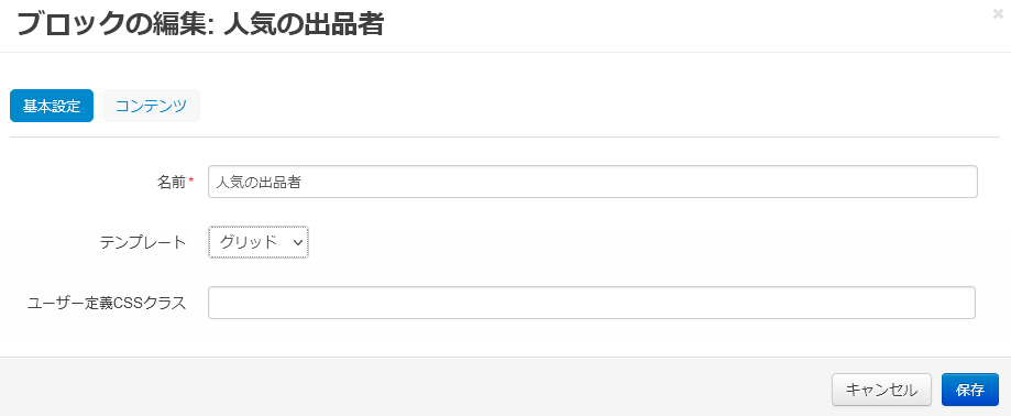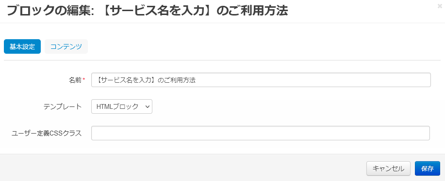 | コンテンツ | ブロックの名称を入力します。 |