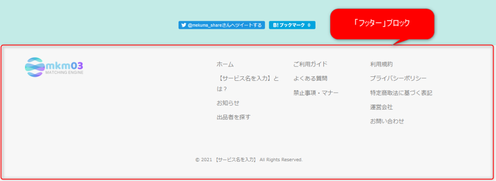 フッターを表示するブロックです。