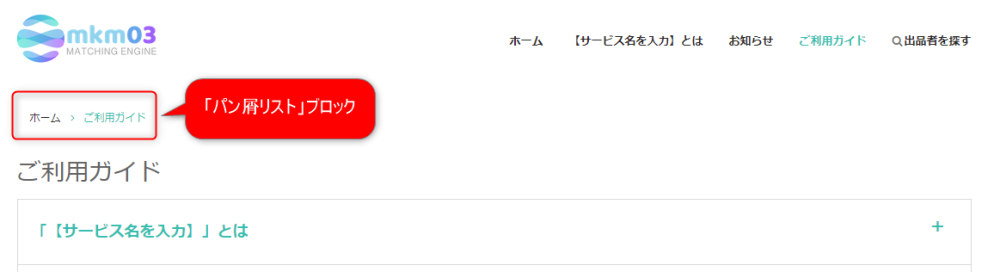 ナビゲーション用のパン屑リストを表示するブロックです。