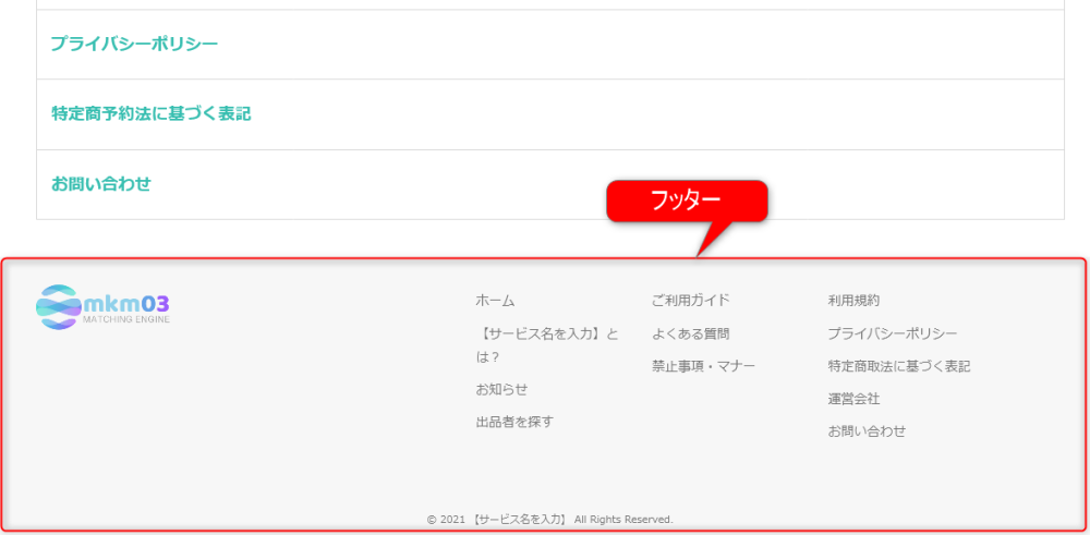 主にフッターブロックを配置します。