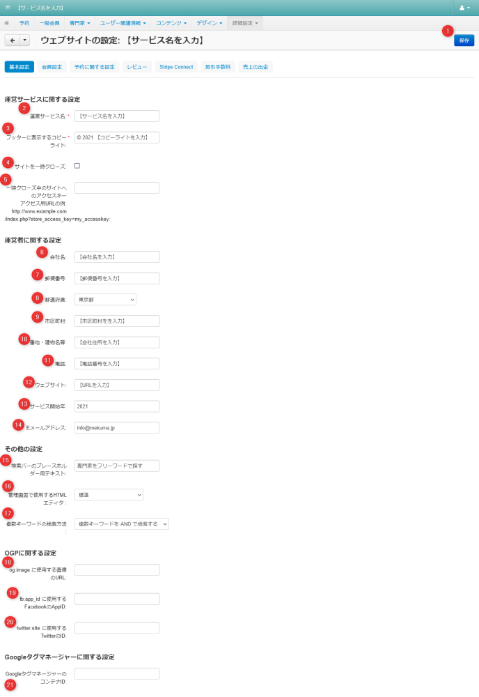 | 21 | GoogleタグマネージャーのコンテナID | GoogleタグマネージャーのコンテナIDを入力します。 |